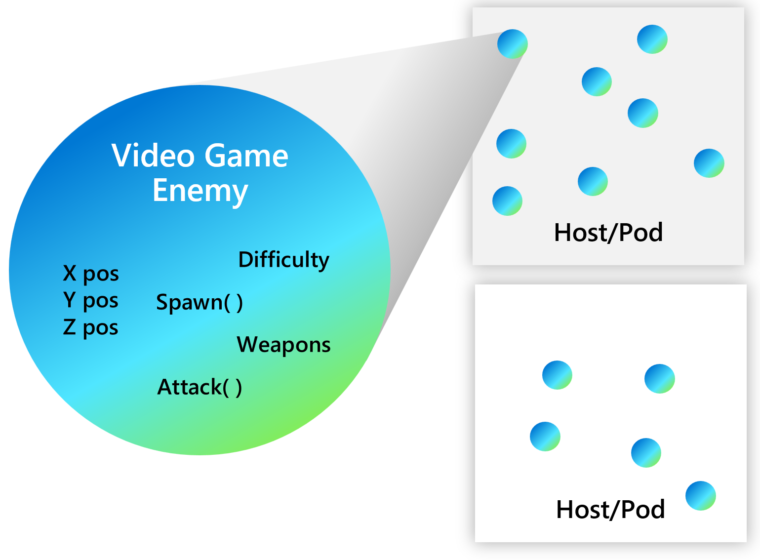 Actors are uniquely defined as an instance of an actor type, similar to how an object is an instance of a class. For example, you might have an actor type that implements the functionality of a calculator. There could be many actors of that type distributed across various nodes in a cluster.